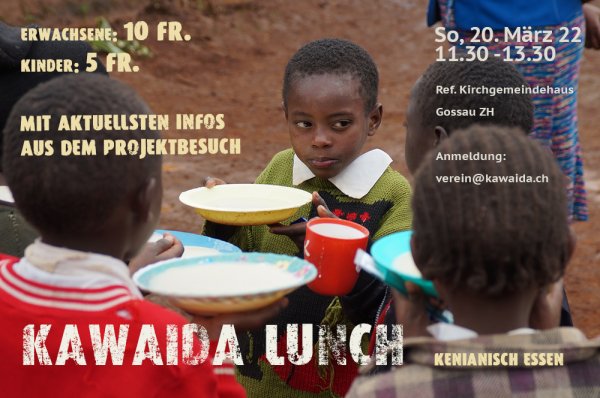 Am Sonntag, 31. März von 11.30 - 13.30 findet wieder der traditionelle Kawaida-Lunch im ref. KGH Gossau ZH statt. Kenianisch Essen, Spiele und Malen für Kinder, aktuelle Infos zum Projekt.