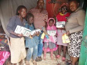 und unterstütze eine Familie für einen ganzen Monat. Das Hilfspaket enthält Maismehl, Gemüse, Kochfett und Seife. Die Koordination der Materialbeschaffung und Verteilung der Hilfspakete übernehmen Nelson und Lilian, wir garantieren für echte Hilfe, die ankommt!