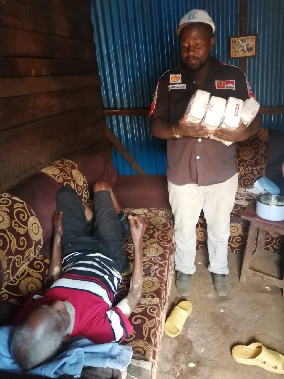 Dieser alte Mann links hat unseren Schulen Gemüse geliefert. Er wurde im Lockdown von Kriminellen zusammengeschlagen und schwer verletzt liegen gelassen. Unsere Hilfe hat ihn erreicht.