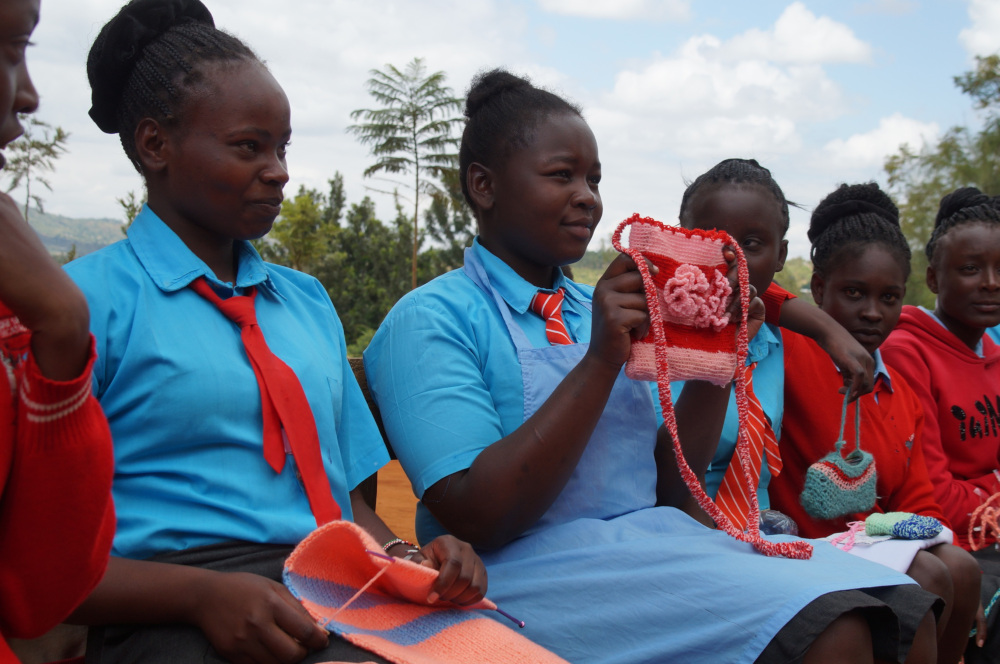 Eine Demonstration ist gerade nicht möglich, da wieder einmal in der ganzen Region seit zwei Tagen der Strom fehlt. Kurz darauf geht allerdings wie von uns bestellt der Strom an und wir können zusehen, wie einzelne Metallstangen zu einem Fenstergerüst zusammengeschweisst werden. Zwar erfüllt die Ausführung der Arbeiten keineswegs SUVA-Norm, aber wir halten uns mit Kritik zurück, können wir doch eindeutig erkennen, was dieses vocational training für Ithanga bedeutet. Die Schülerinnen und Schüler werden nicht nur in handwerklichen Fähigkeiten trainiert, die ihnen besonders gute Zukunftsmöglichkeiten bescheren, sie haben auch eine motivierende Aufgabe ausserhalb der Schulzeiten. Viele der neuen Bauten, die wir antreffen, wurden von den Schülern für die Schule und damit auch für sich selbst hergestellt. Wir begeben uns auf die andere Seite des Geländes, wo die Mädchen im Kreis auf uns warten. Auf den Knien präsentieren sie stolz ihre jüngsten Kreationen, die sie unter der Leitung von Lilian in den letzten Wochen hergestellt haben: Wir erkennen gehäkelte Täschchen, Kappen, gestrickte Schale, Socken und vieles mehr. Farbenfroh erzählen die Kreationen kleine Geschichten von Müh, Frust und Durchhaltewillen aber auch von besonderen gestalterischen Fähigkeiten. Lilian will, dass die Mädchen zuerst die verschiedenen Strick-, Häkel-, Stick- und Nähtechniken von Hand lernen, bevor sie die Mädchen an die schon bereitstehenden Nähmaschinen lässt. Bei genauerem Hinsehen bemerken wir, dass einige der Arbeiten nicht mit Strick- oder Häkelnadeln, sondern mit dünnen Holzstäbchen hergestellt wurden. Das müssen wir uns merken, es wäre ein Leichtes, solche das nächste Mal in unserem Gepäck mitzubringen. Wir erkennen, dass die Geschlechterrollen in den handwerklichen Arbeiten klar verteilt sind, daher können wir uns eine Nachfrage nicht verkneifen. Selbstverständlich dürfen auch Mädchen schweissen, mauern, schleifen, hobeln und Motoren auseinandernehmen, wenn sie sich dafür interessieren, versichert uns Lilian. Sie ist überzeugt, dass es in Zukunft Mädchen geben wird, die diesen Weg einschlagen werden. So wie wir Lilian und Nelson kennen, zweifeln wir keinen Moment, dass sie diese Mädchen und alle anderen jungen Menschen auf ihrem Weg in ein selbstbewusstes, eigenständiges Leben nicht vollumfänglich unterstützen werden, egal welche Richtung sie wählen. Dass sie dabei als Direktoren des Projektes in demütiger Haltung selbst viele grosse Opfer bringen müssen und können, haben sie schon so oft bewiesen. Und dass sie momentan mit zwei Mädchen, die von ihren Familien verstossen wurden, unter einem Dach leben für ihr gesamtes Leben aufkommen, ist ein weiteres Zeugnis dafür, dass sie sich mit Herz und Seele für Kinder und Jugendliche aus benachteiligten Verhältnissen einsetzen und das Herzstück des Projektes bilden, das auch ein Teil von uns geworden ist.